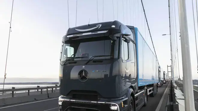 First new Amazon electric heavy goods vehicles hit UK roads